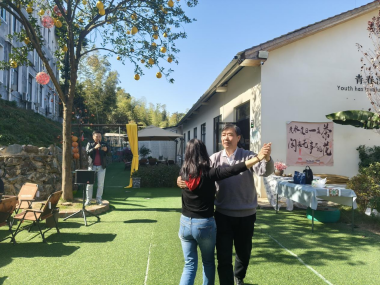 露天K歌区的音响声一起,便瞬时点燃全场。《歌唱祖国》《映山红》等经典旋律乘着清风漫开,老同志浑厚嗓音里裹着一代人的青春与热血,满是跨越岁月的滚烫记忆。有人跟着旋律轻叩掌心附和,更有几位老同志起身翩翩起舞—脚步轻盈如蝶,掌声、喝彩声与歌声紧紧交织,一同飘向远处黛色的山林。偏爱清静的老同志则相携漫步林荫道,脚下落叶踩出沙沙轻响,不时驻足指点山间云影,尽享这份难得的悠然自在。